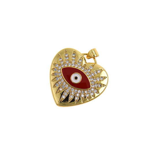 Heart Shaped Gold Plated Evil Eye Pendant, Evil Eye Charm 25x25mm
