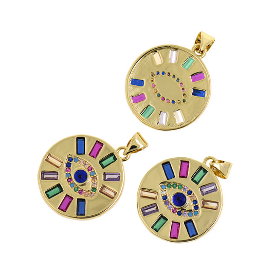 18K Filled Gold Evil Eye Pendant, Round Evil Eye Pendant 17mm