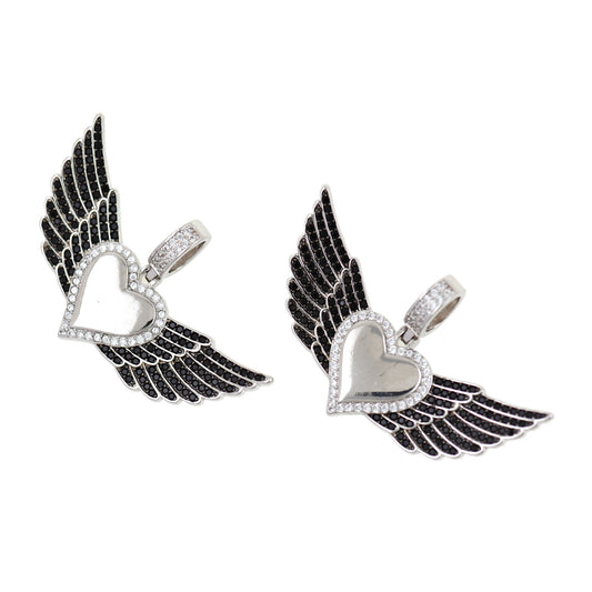 CZ Micropavé Heart Wings Pendant, Heart Charm 46x22.5mm