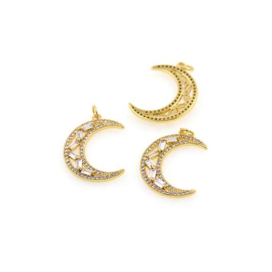 CZ 18K Gold Half Moon Pendant, Moon Pendant 20x26.5mm