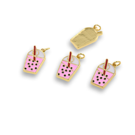 18K Gold Plated Enamel Milk Tea Cup Pendant 12x20mm
