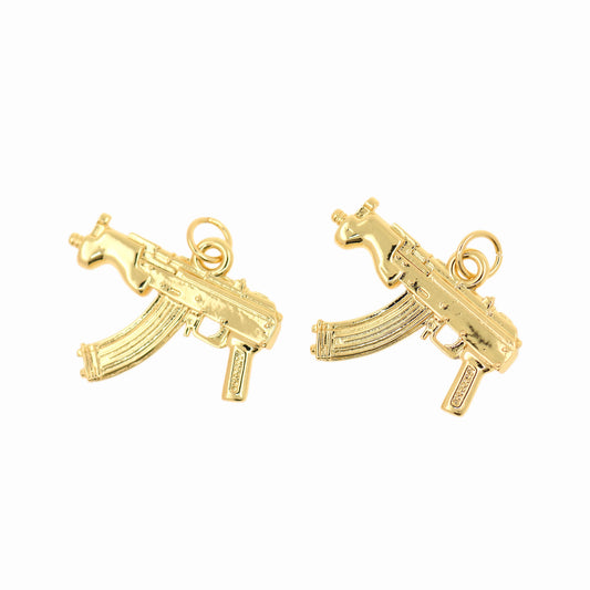 18K Gold Plated Submachine Gun Pendant, Submachine Gun Charm 39x13mm