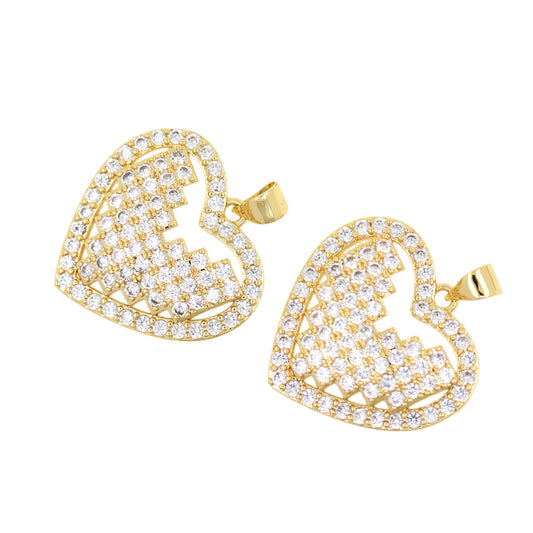 18K Gold Filled Love Charm, Micropavé CZ Heart Pendant 23x22mm