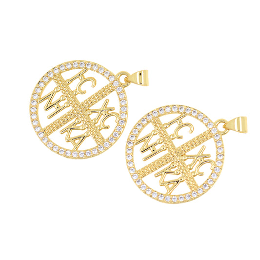 18K Gold Filled Catholic Charm,Hollow Fashion Letter Cross Pendant 24mm