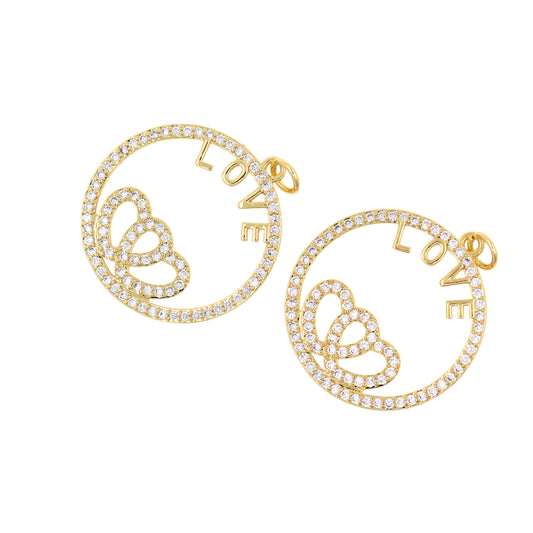 18K Gold Filled Round Love Pendant,Love Charm Necklace Pendant 25.5mm
