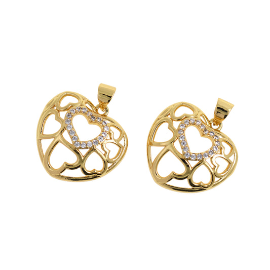 Brass Gold Plated Diamond Heart Pendant 28x25.5mm