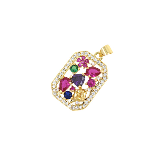 18K Gold Plated Zircon Rectangle Pendant 24x16mm