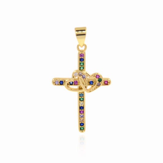 Delicate CZ Micro Set Pavé Cross Pendant 22x12mm