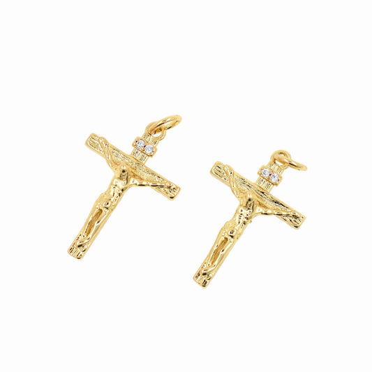 18K Filled Gold Passion Pendant with Diamonds, Cross Charm 23x15mm