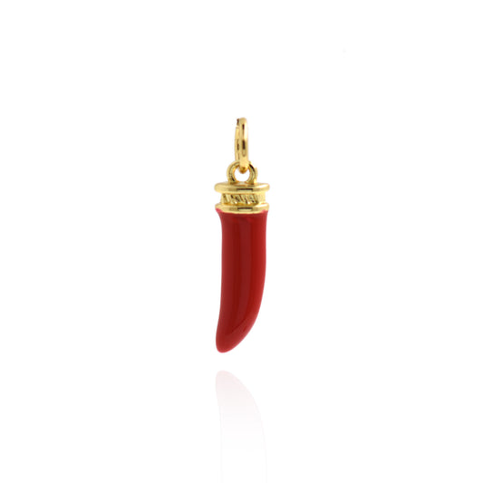 Dainty Gold Italian Luck Horn Pendant 17.5x5mm