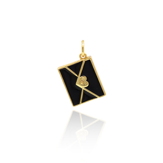 Enamel Heart with Envelope Charms,18k Gold Filled Love Letter Pendant 11x15mm