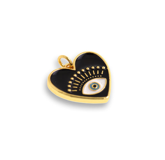 Brass Enamel Heart Evil Eye Pendant with Diamond 31x25mm