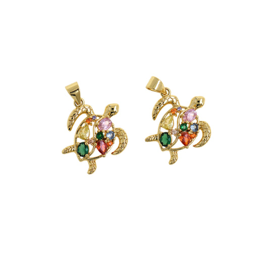 18K Gold Plated Zircon Tortoise Pendant 20x20mm