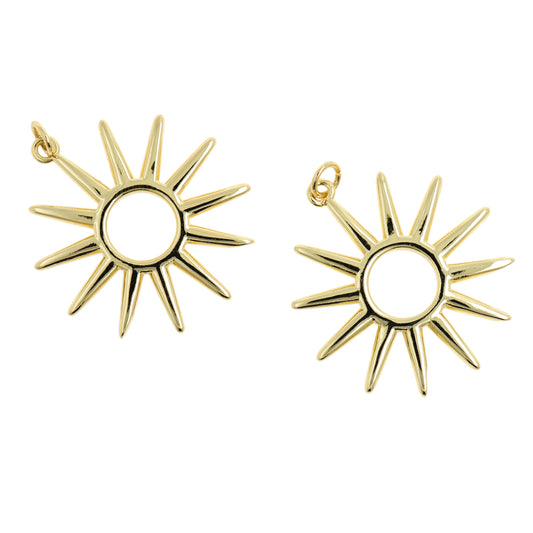 Exquisite 18k Gold Sun Charm,Cubic Zirconia Sun Pendant 26x21.5mm