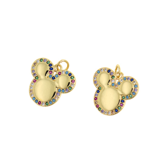 18K Gold Plated Bear Head Pendant with Colorful Zircon 18x17mm