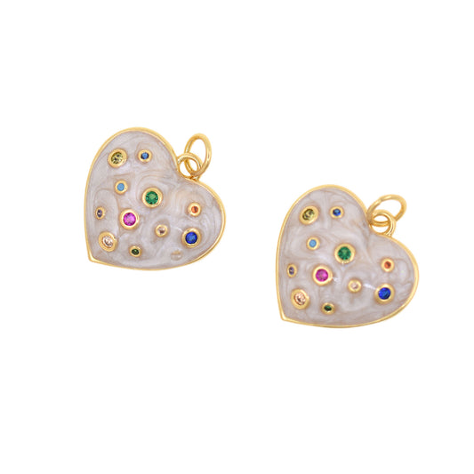Enamel Heart Pendant, 18K Gold Filled Zircon Heart Pendant 18x18mm