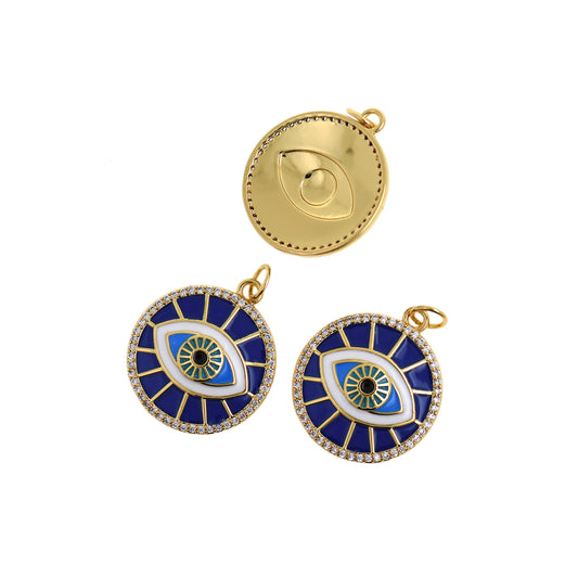 Blue Enamel Evil Eye Pendant,18K Gold Filled Dainty Evil Eye Charm 19mm