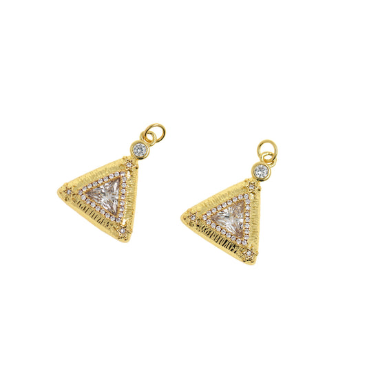 Gold Triangle Charm, 18K Gold Filled Diamond Jewelry Pendant 19x15mm