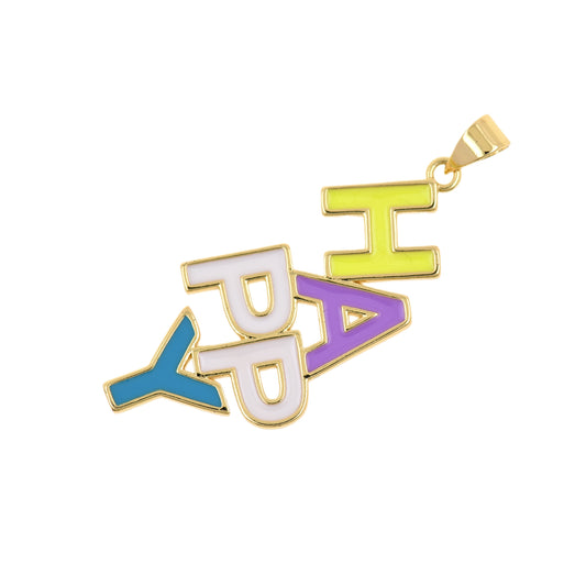 18K Gold Filled Letter Pendant,Happy Pendant 38x18mm