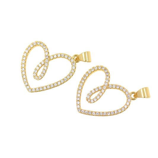 Delicate Heart Pendant, Brass Gold Plated Zircon Accent 22x21mm