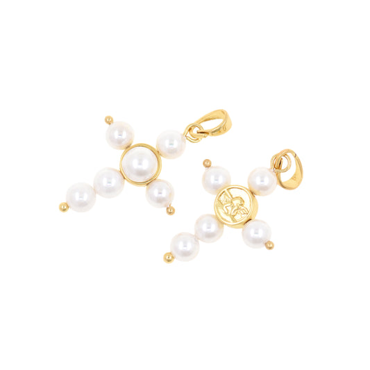 18k Gold Filled Pearl Shell Cross Pendant 27x19.5mm