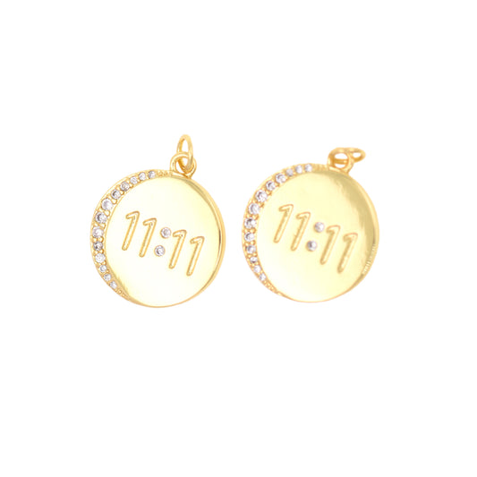 Gold Plated Brass Moon Clock Pendant with Diamonds 18.5mm