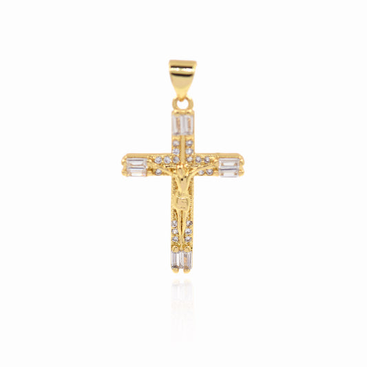 18K Gold Filling Zircon Cross Pendant 25.5x17mm