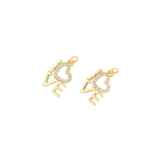 Plated Zircon Heart Pendant,Love Charm 18x11mm
