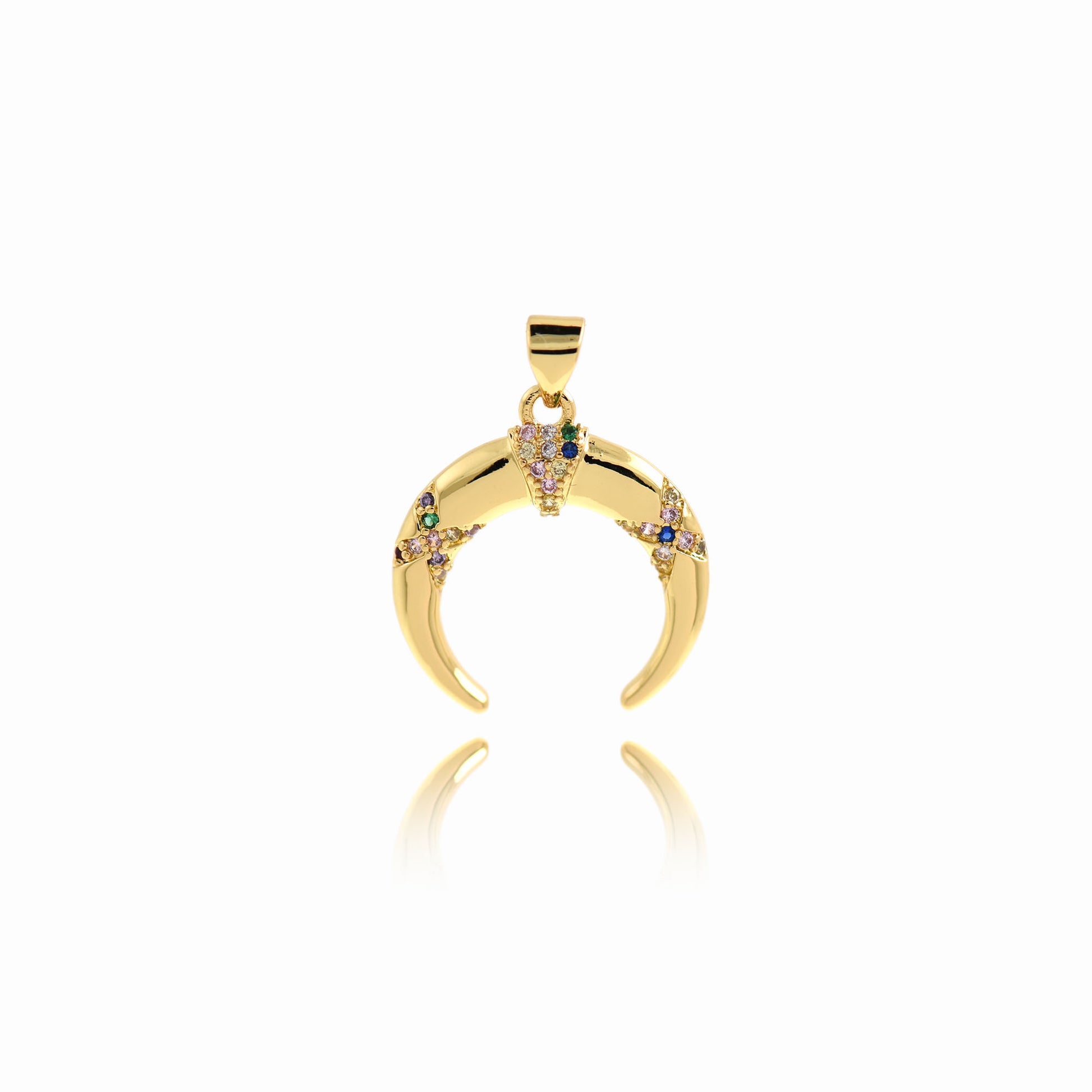 Colorful Zircon Moon Pendant in Brass, Moon Charm 21x20mm